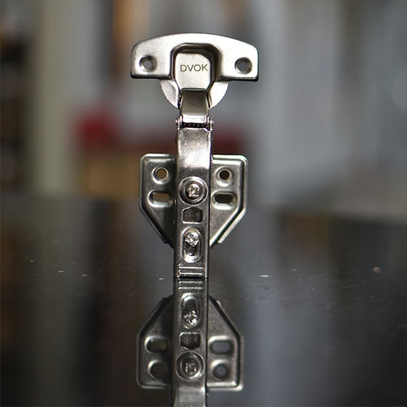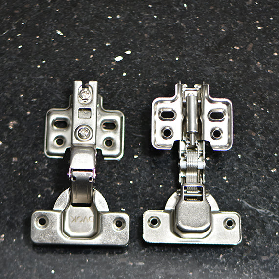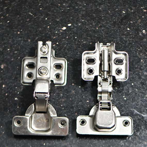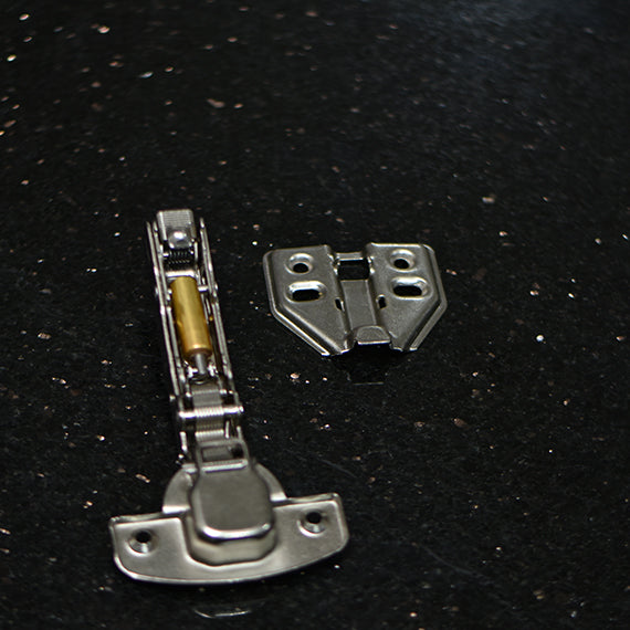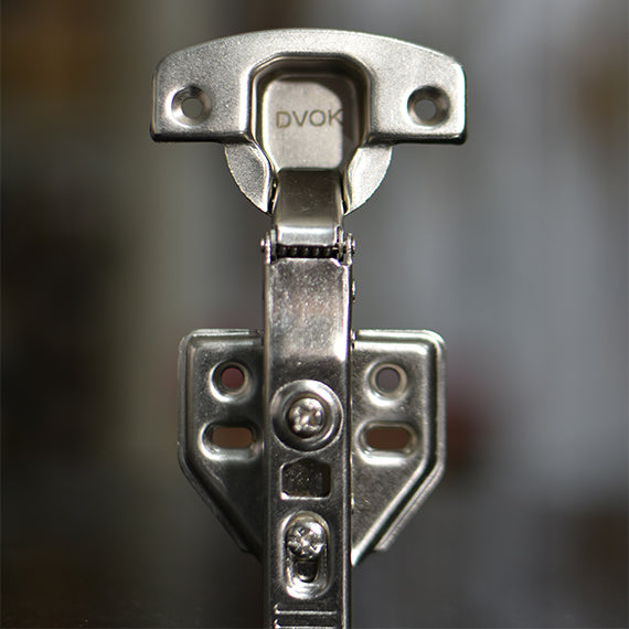 This type of hinge is commonly used in kitchen cabinets and furniture doors to provide a quiet and smooth closing action without the need for a clip.